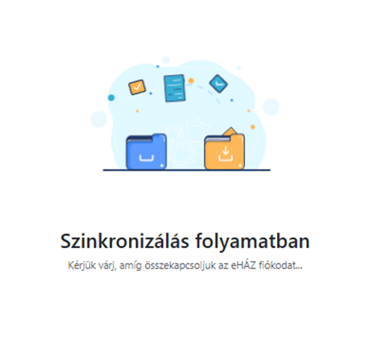 A társasházak kiválasztása után a Szinkronizálás indítása gombra kell kattintani, mely esetben az adatszinkronizálás megkezdődik, a képernyőn pedig a szinkronizálás folyamatban felirat látható.