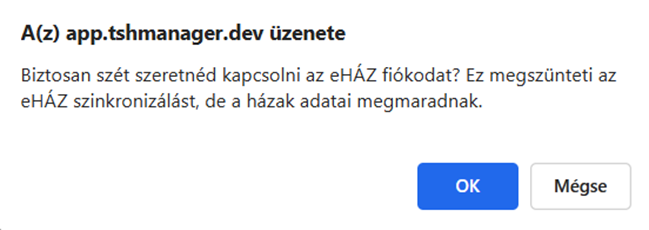 Lehetőség van az eHázzal való integráció megszüntetésére is.