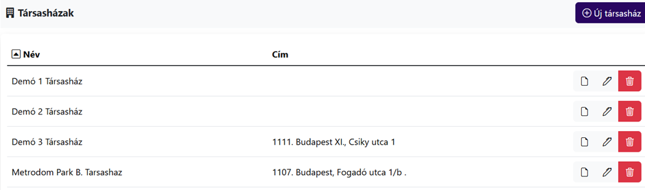 A Társasházak menüben már nincs a Társasház neve mellett az eHáz szinkronizációt jelző kis ikon.