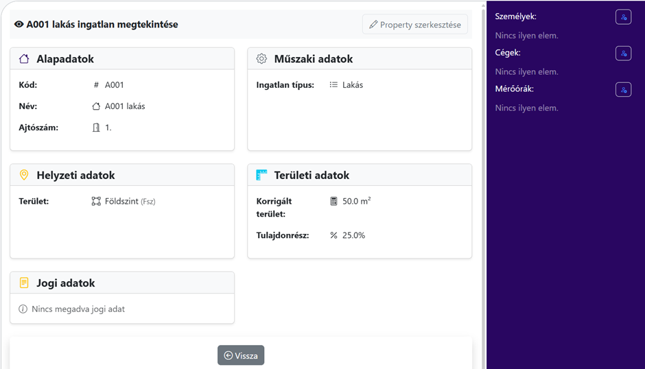 Ezután látjuk a struktúrát a Társasház kezelése résznél.