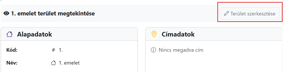 Egyéb esetben azonban mindegyik Terület típus (épület, terület, ingatlan/albetét) ugyanazzal a módszerrel módosítható.