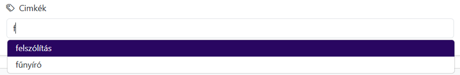 Címkére kereséshez a címkék mezőbe el kell kezdeni beírni a használni kívánt címke nevét, a rendszer pedig felajánlja a lehetőségeket.