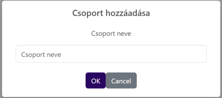 Az Új csoport gomb megnyomásával egy új, Csoport hozzáadása felület jelenik meg, ahol el tudjuk nevezni a csoportot.