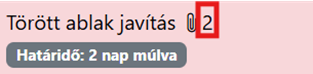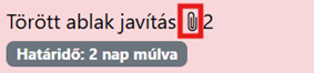 A feladatok listájában, a feladat neve mellett található gémkapocs ikon jelzi, ha fájl van csatolva a feladathoz.