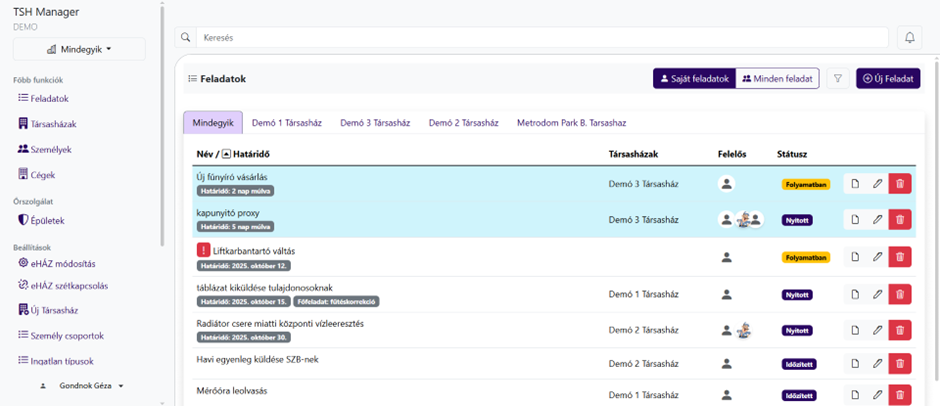 A bal oldalon található menü több pontra oszlik fel, úgy mint: